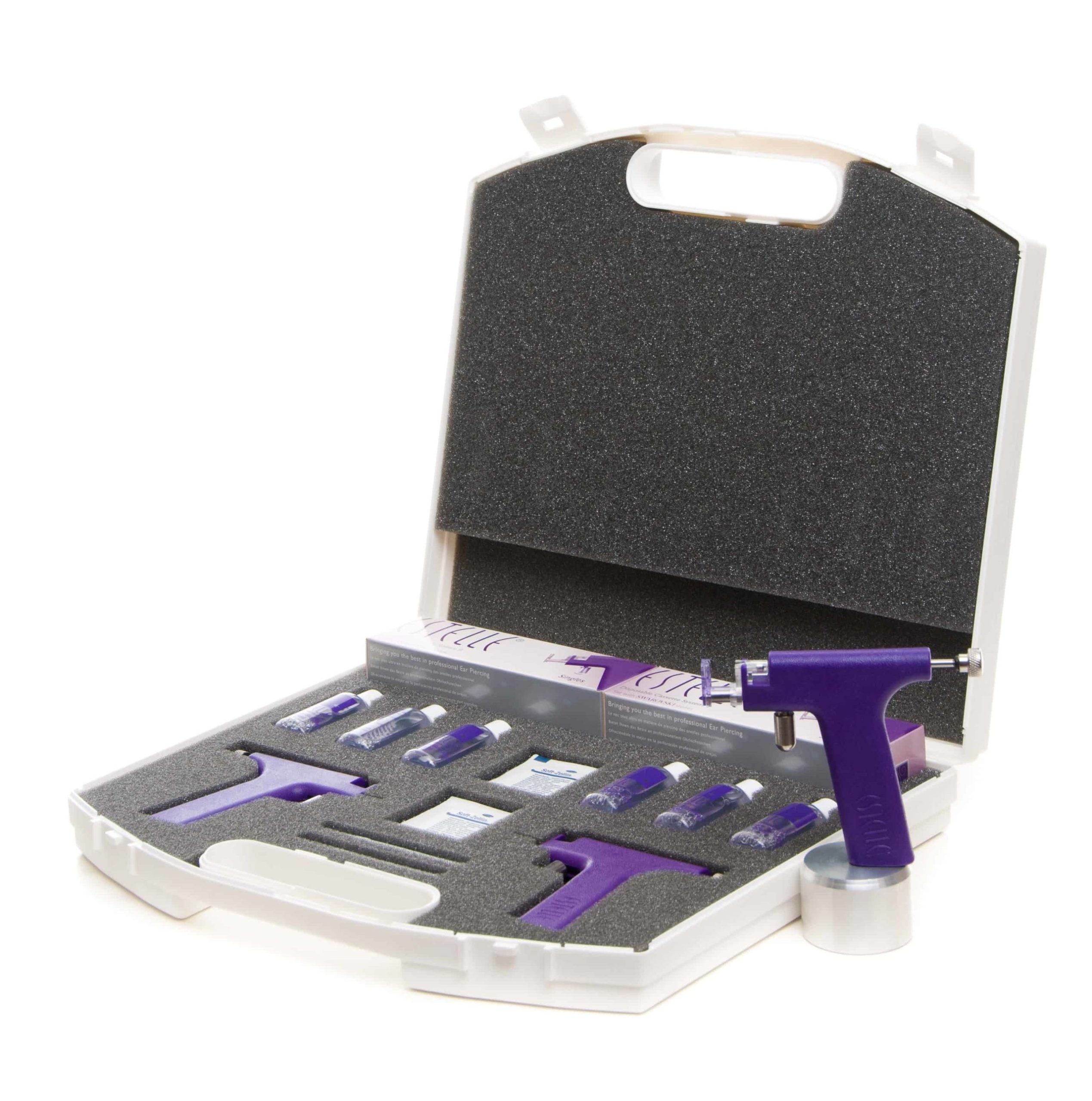 The Estelle System II Starter Kit is one of our best selling products, a staple in salons and piercing studios alike, the System II is constructed from a durable, easy-grip plastic body with hygienic alloy components making up the devices moving parts.